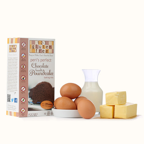 This makes a 12-cup bundt (huge) gluten-free chocolate pound cake that is out of this world! Named for my niece Peri, who loves chocolate cake, this gluten-free cake is sure to be a crowd-pleaser. It's moist, chocolatey and you'd never know it's gluten free. This mix also can be used for 2 9" round or 2 loaf pans.