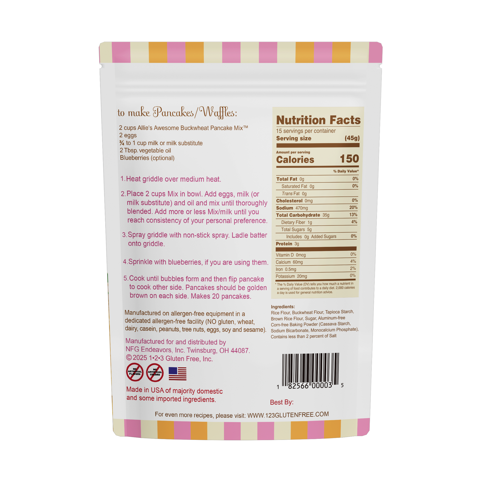 Want to mix it up? Use this base to make pumpkin pancakes, banana pancakes, or double chocolate chip pancakes. See our recipe section for details.