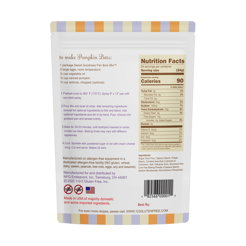 You make these moist and delicious gluten-free snack cakes by adding eggs, oil and either canned pumpkin, unsweetened applesauce, mashed bananas, canned sweet potatoes, or shredded zucchini. Serve plain, sprinkled with powdered sugar, or frosted with cream cheese icing. No one will ever know these are gluten-free!
